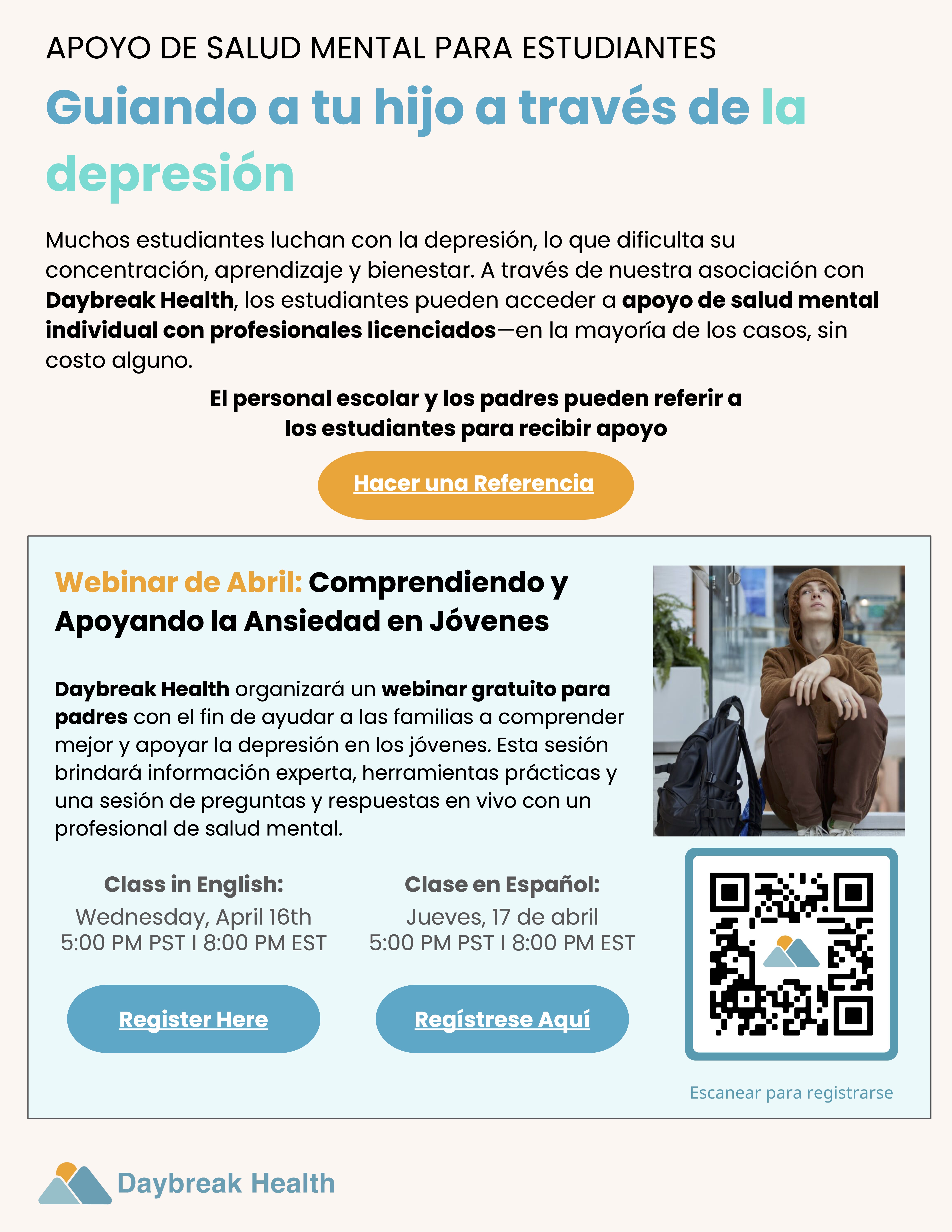 This session will help parents recognize signs of anxiety, provide emotional support at home, and understand when professional help may be needed. Parents will also have the chance to ask questions during a live Q&A with a licensed clinician.