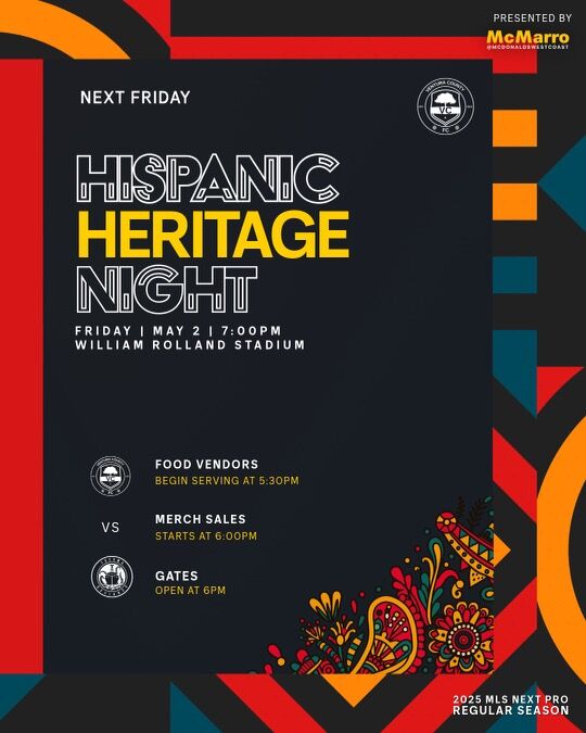 Ventura County FC is offering Free Tickets for Hispanic Heritage Night on Friday May 2nd 7pm use discount code "heritage" at check out. https://vcfcpro.com/tickets/single-match-tickets/