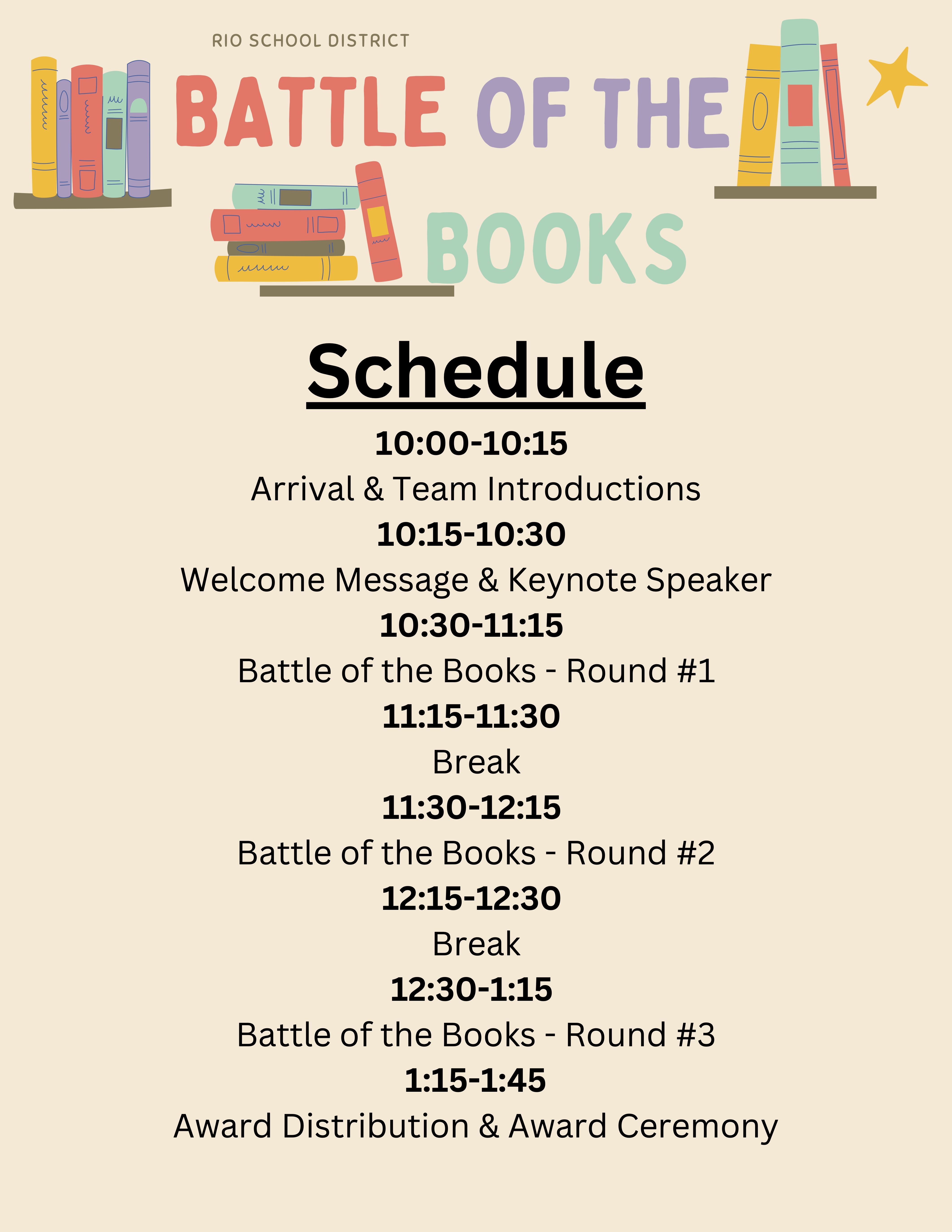 All families are invited to join us for this yearβs exciting Battle of the Books atΒ Rio Vista Middle School!